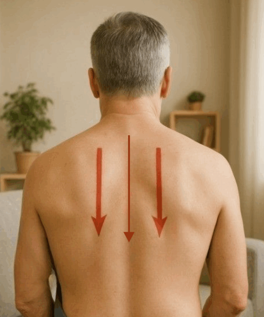 If it is not possible to treat the chest area on the back, similar treatment can be performed on the front – from top to bottom, in the center and on the sides of the sternum.