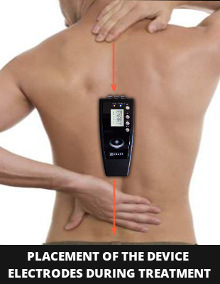 Typically, the electrodes of the device are placed along the spine, but can also be placed across.