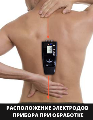 Обычно электроды аппарата располагаются вдоль позвоночника, но могут располагаться и поперек.