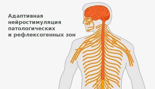 Воздействие называется адаптивной нейростимуляцией и осуществляется неинвазивно через кожу на различные органы — патологические и рефлексогенные зоны.