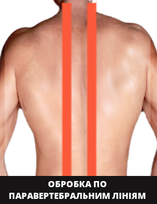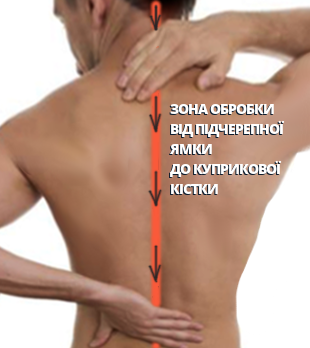 Лікувальна обробка також проводиться зверху вниз, але не по хребту, а по паравертебральних лініях.
